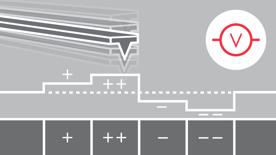 True Non-Contact™ Mode can also image tall features. Sensing attractive forces not only at the tip apex but also along its sides, as the tip approaches vertical features, the Z-servo can quickly retract the tip to climb over the wall.