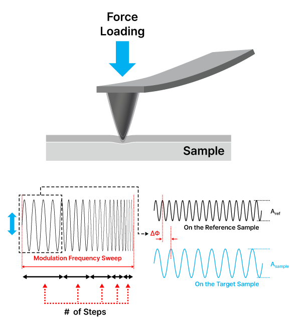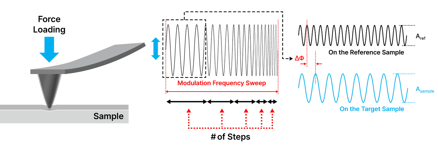 Nanoscale viscoelastic property measurement by applying oscillatory forces via the AFM cantilever and analyzing the frequency-dependent mechanical response